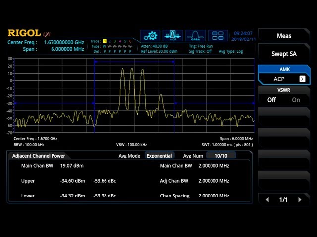T-Power, ACP (Adjacent Channel Power), Chan Pwr (Channel Power), OBW (Occupied