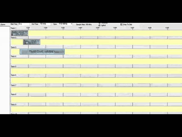 - Расширение продолжительности сегмента сигнала путем нажатия правой кнопки мышки на отображении его формы на дорожке и изменения времени его завершения.Быстрое размещение и выравнивание сигналов перетаскиванием во временной области.