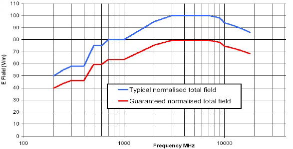 Например, для уровней выше 1 ГГц последние редакции стандартов оборонной и авиакосмической промышленности предполагают проведение испытаний на уровнях порядка 3500 В/м в непрерывном режиме или даже 6000 В/м в режиме импульсной модуляции, т.е. на уровнях, недостижимых при помощи серийного оборудования.