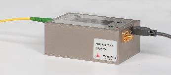 The compact optical receiver for point-to-point application is battery powered and especially shielded for a very high immunity to electromagnetic fields. It has one USB interface for system configuration and supervision.