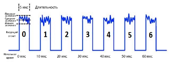 Пример формы сигнала из семи импульсов