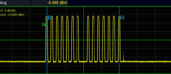 Используйте маркеры, чтобы определить часть формы сигнала, на которой будут выполняться измерения. Измерения «между маркерами» идеально подходят для мониторинга определенных частей пакета в течение длительных интервалов.