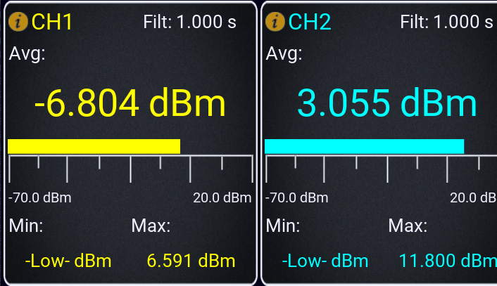 Диапазон внешних уровней от -40 дБм до +20 дБм (в зависимости от датчика)
