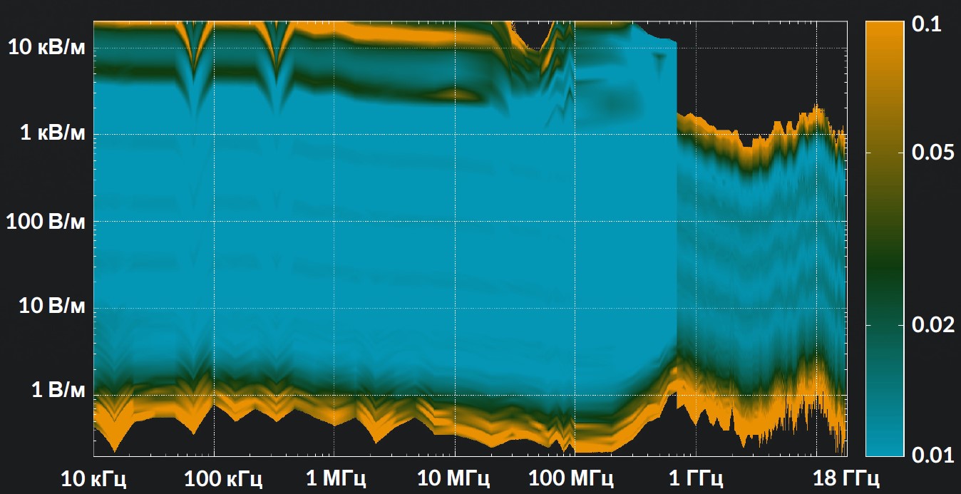 | 1 ГГц ... 18 ГГц | <1 В/м ... >1 кВ/м |